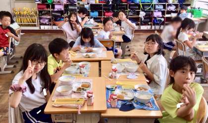 6月16日(月)の梅坪小(6)4年生の給食風景