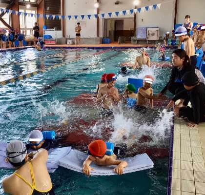 6月16日(月)の梅坪小(12)水泳授業 特別支援学級 平芝スイミングプール