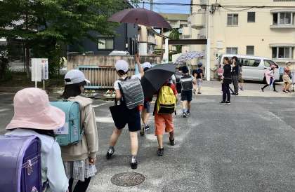 日傘をさす子も増えました。