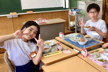 6月17日(火)の梅坪小(9)5年生の給食風景