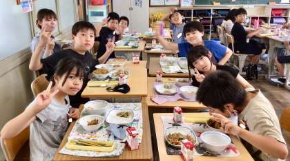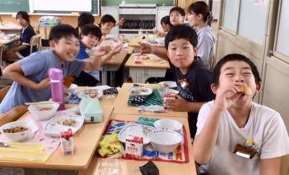 6月17日(火)の梅坪小(13)5年生の給食風景