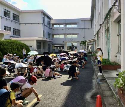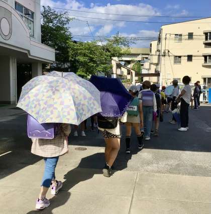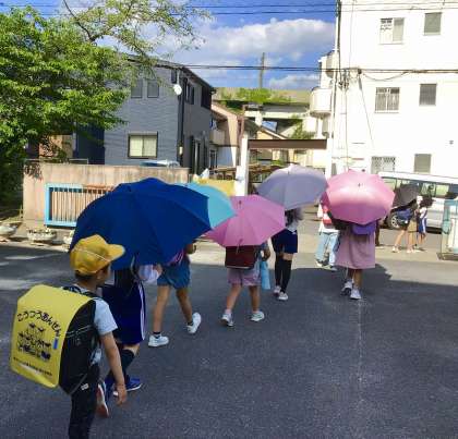 直射日光をさえぎるため、傘さし登下校の子が一気に増えたように思います。