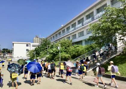 子どもたちは 暑さに負けず元気に登校しております!
