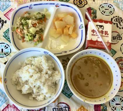 6月18日(水)の梅坪小(5)やったぁー、カレーだ!