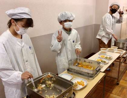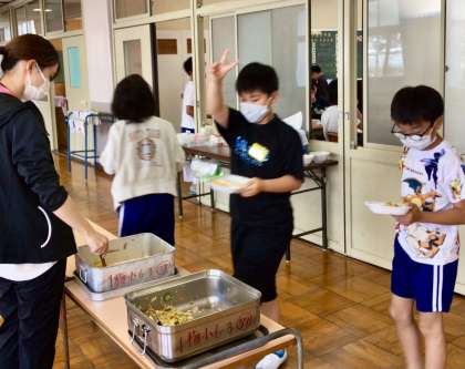 今日は、先日の修学旅行で クラスや学年の仲がいっそう深まった6年生の給食風景をお届けいたします♪
