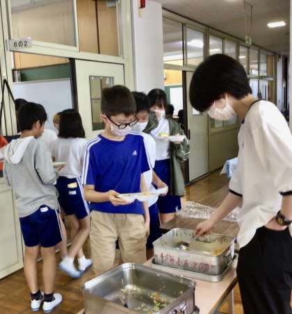 6月18日(水)の梅坪小(6)6年生の給食風景