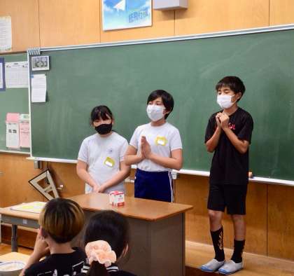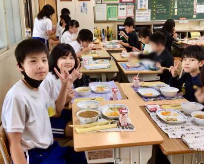 6月18日(水)の梅坪小(7)6年生の給食風景