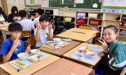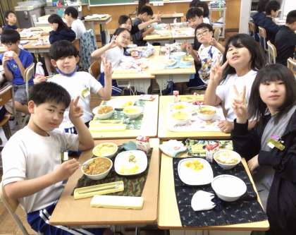 6月18日(水)の梅坪小(9)6年生の給食風景
