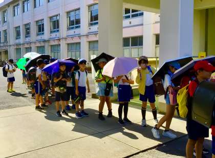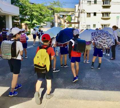 6月18日(水)の梅坪小(25)中高学年下校の様子