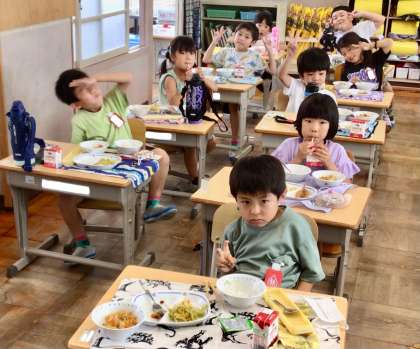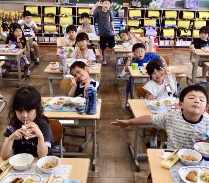 6月19日(木)の梅坪小(10)1年生の給食風景