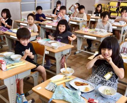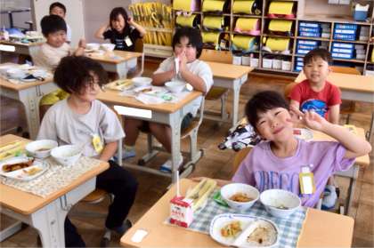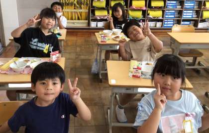 6月19日(木)の梅坪小(14)1年生の給食風景