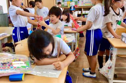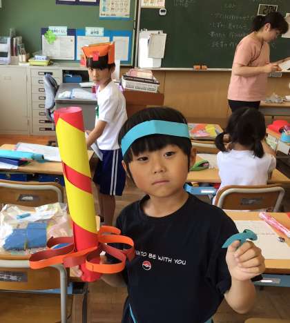 6月19日(木)の梅坪小(25)2年生 図工 わっかでへんしん