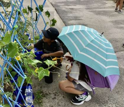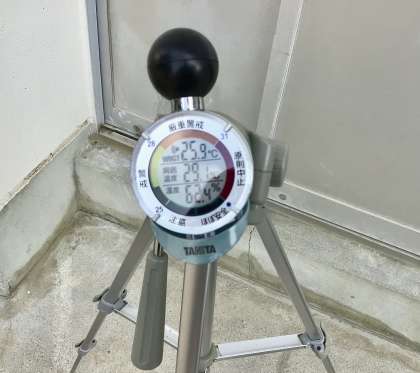 保健室前では、養護教諭が常に 気温、湿度、WBGTをはかり、日差しなど外気の様子にも気を配っています。