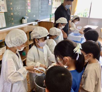 6月20日(金)の梅坪小(7)2年生の給食風景