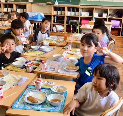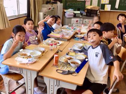 6月20日(金)の梅坪小(12)2年生の給食風景