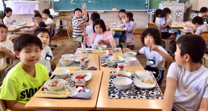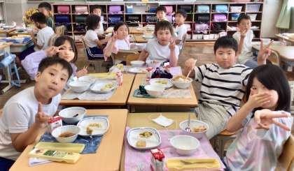 6月23日(月)の梅坪小(11)3年生の給食風景