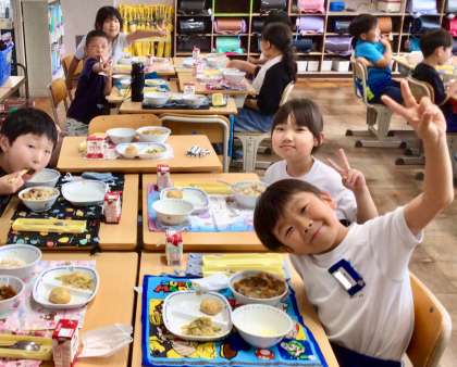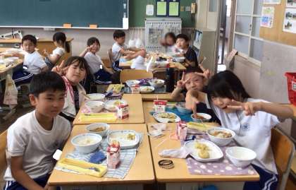 6月23日(月)の梅坪小(13)3年生の給食風景