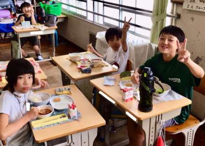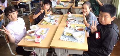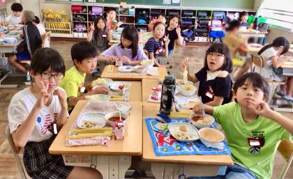 6月24日(火)の梅坪小(9)4年生の給食風景