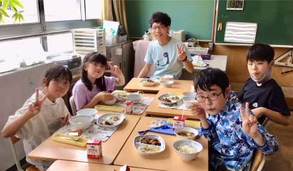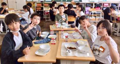 6月25日(水)の梅坪小(10)5年生の給食風景
