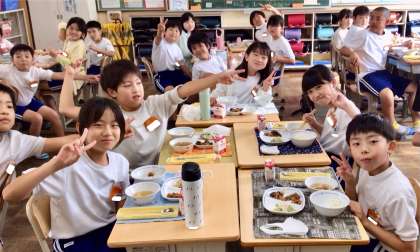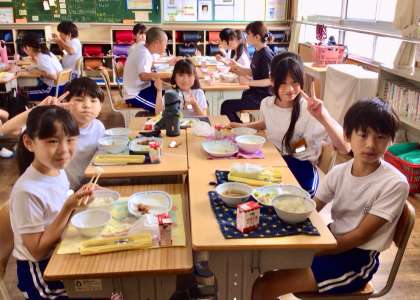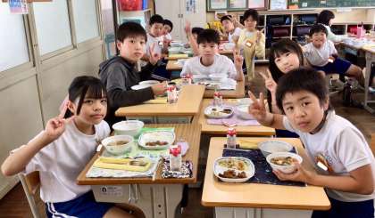 6月25日(水)の梅坪小(12)5年生の給食風景