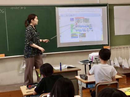 教師は、デジタル教科書を使って、資料提示をし 子どもたちの追究意欲をかき立てていました。