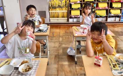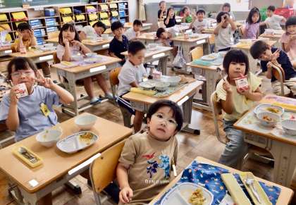 6月27日(金)の梅坪小(13)1年生の給食風景