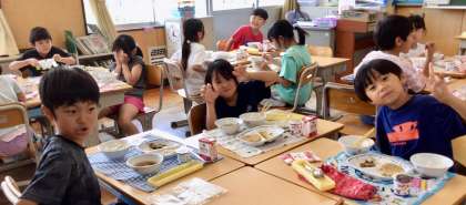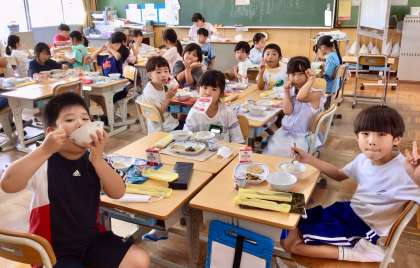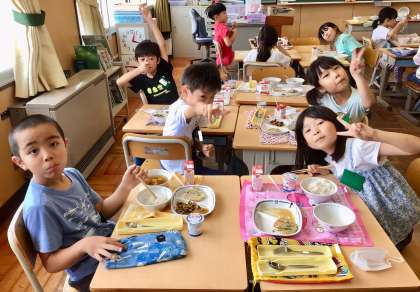 6月30日(月)の梅坪小(7)2年生の給食風景