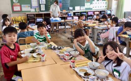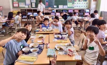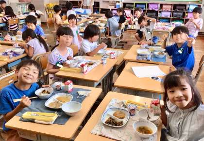 6月30日(月)の梅坪小(8)2年生の給食風景