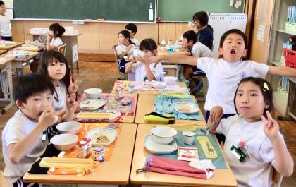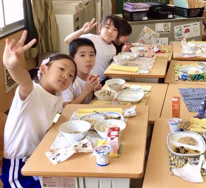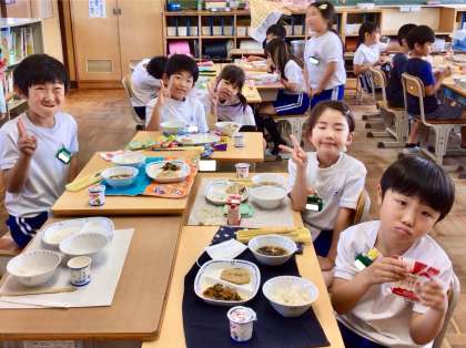 6月30日(月)の梅坪小(10)2年生の給食風景