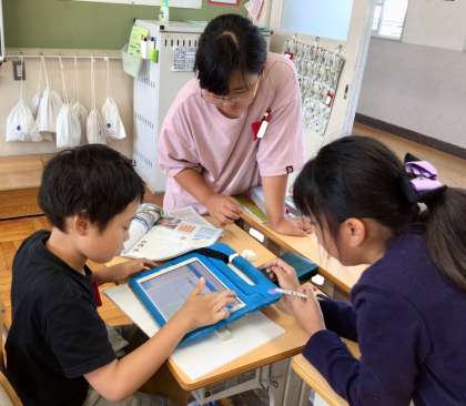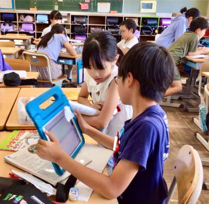 森の役割、ダムの役割をタブレットでまとめていくうちに、子どもたちはあらためて水の価値に気付いたようです。