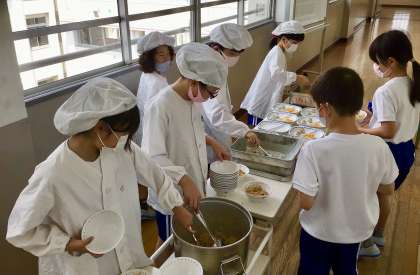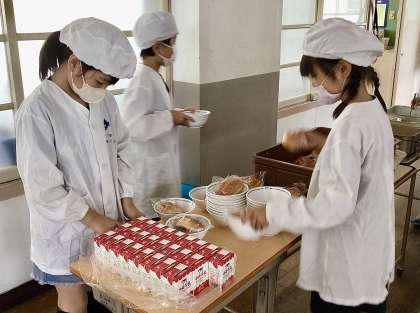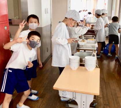 7月1日(火)の梅坪小(4)3年生の給食風景