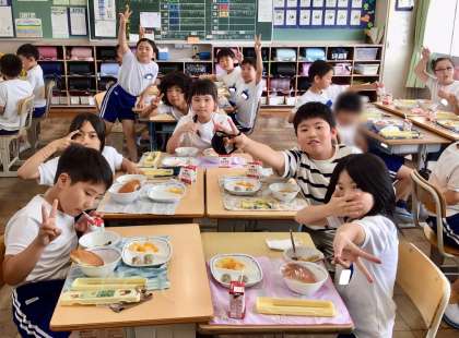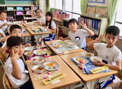 7月1日(火)の梅坪小(6)3年生の給食風景