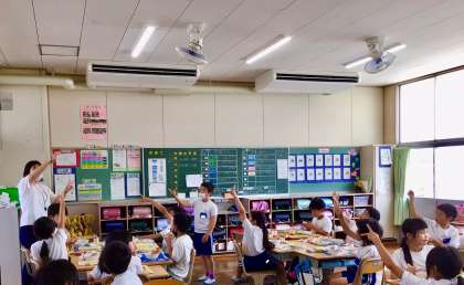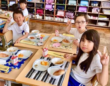 7月1日(火)の梅坪小(7)3年生の給食風景