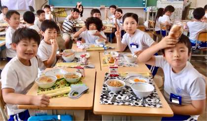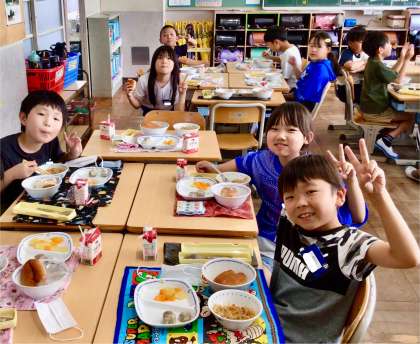 7月1日(火)の梅坪小(8)3年生の給食風景