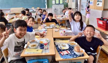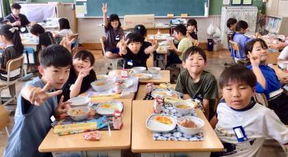 7月1日(火)の梅坪小(10)3年生の給食風景