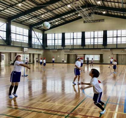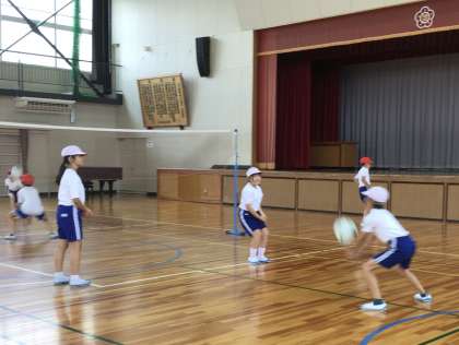 7月1日(火)の梅坪小(16)4年生 体育 ソフトバレーボール