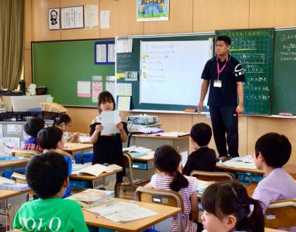 数え方のヒントとなる画像を教師用タブレットを使ってスクリーンに映し、子どもたちの気づきを引き出していました。