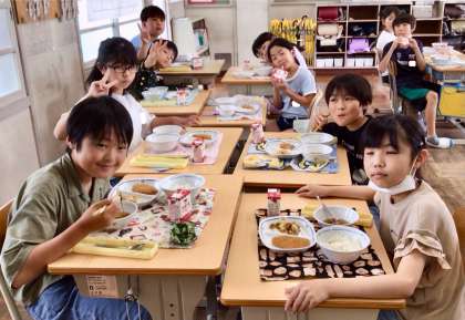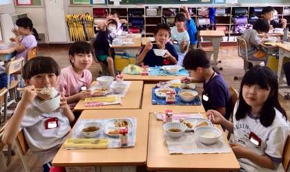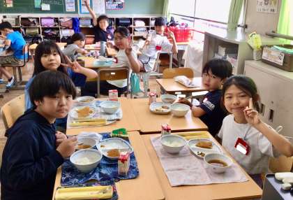 7月2日(水)の梅坪小(11)4年生の給食風景