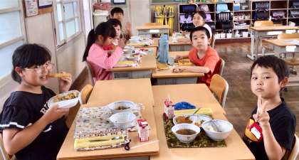 7月2日(水)の梅坪小(13)4年生の給食風景