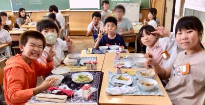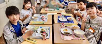 7月3日(木)の梅坪小(12)5年生の給食風景
