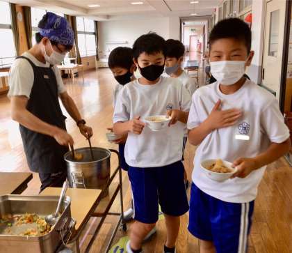 7月3日(木)の梅坪小(13)5年生の給食風景