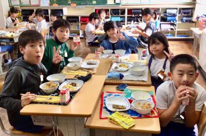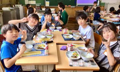 7月3日(木)の梅坪小(17)5年生の給食風景