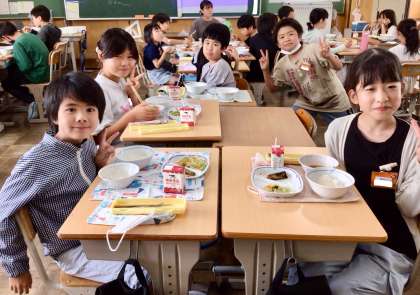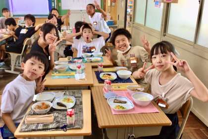 7月3日(木)の梅坪小(18)5年生の給食風景