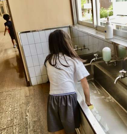 きれいにする活動のなかで、責任や協調の心も養っています。