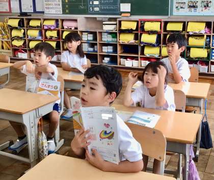 7月3日(木)の梅坪小(25)1年生 算数 たしざんかな ひきざんかな