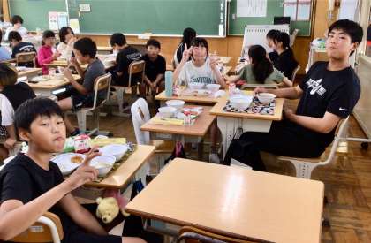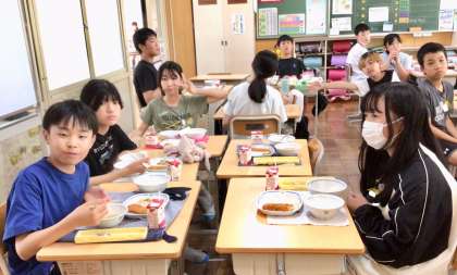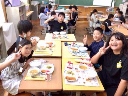 7月4日(金)の梅坪小(9)6年生の給食風景