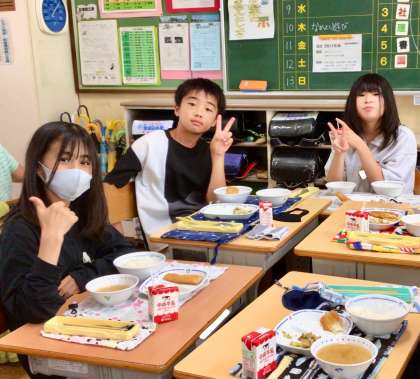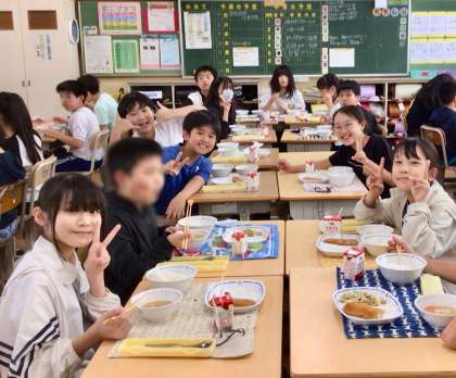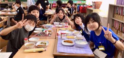 7月4日(金)の梅坪小(10)6年生の給食風景