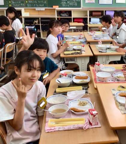 7月4日(金)の梅坪小(13)6年生の給食風景