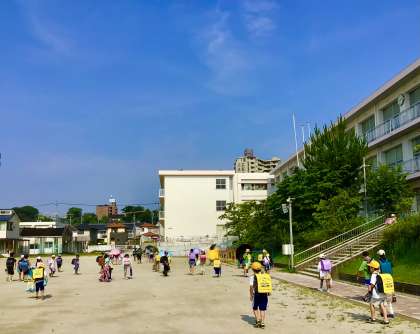 猛暑のなか、元気に登校しています!