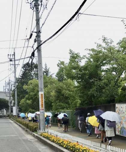 傘差し下校では、一列歩行を促しています。